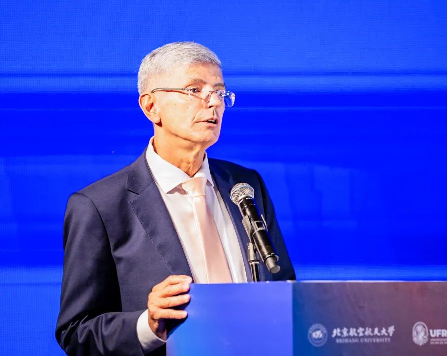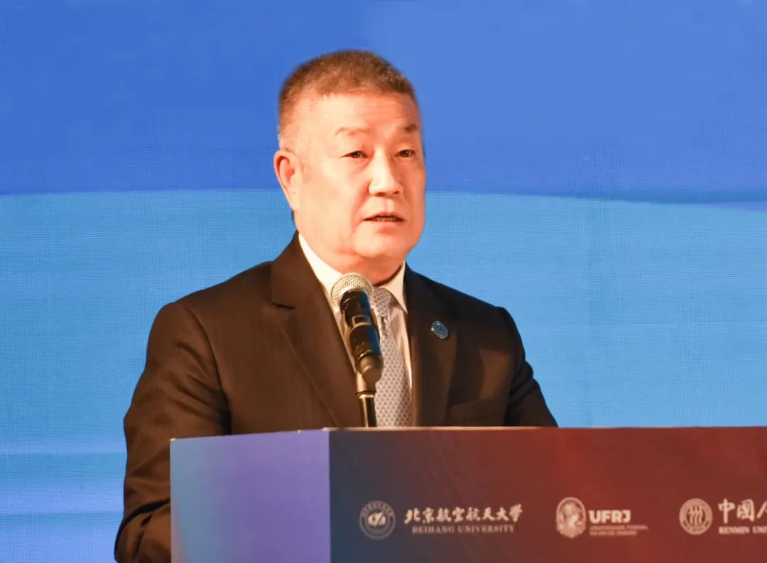 赵长禄在致辞中表示,中国和巴西建交半个世纪以来,中巴两国始终秉持相互尊重、平等互利的精神,携手推动南南合作,为世界多极化和全球化注入了强大正能量。北航作为新中国第一所航空航天高等学府,70多年来始终积极推进国际合作,秉持开放、共享、务实的合作理念,与里约热内卢联邦大学共建孔子学院、北航巴西创新研究院和北航巴西中心。北航巴西创新研究院首届交叉科技论坛的举办标志着双方进入实质性合作阶段,是深入落实两国总体战略的具体体现。北航巴西创新研究院将聚焦但不限于航空航天、绿色能源、智能制造、人工智能等前沿领域,汇聚两国学者,组织开展交叉研究,推动高校企业间联合攻关与成果转化,打造中巴科研合作高地,为全球可持续发展贡献智慧;里约热内卢联邦大学孔子学院将成为巴西青年汉语学习、了解中国社会文化的重要窗口;中国-巴西文明交流互鉴合作研究中心将推动两国在人文社科、历史传统、社会发展等领域的深度对话,成为新时代中巴思想交流的重要平台。他强调,以上平台和合作机制,既保证各平台自身功能定位,又具备创新开放共享、融合发展的组织模式,共同支撑打造有影响力的综合平台:汇聚一流学者,推动交叉研究创新;促进文化交流,增进中巴两国人民友谊;拓展教育项目,为更多两国青年学生创造国际化培养机会;营造开放、包容、共享、融合的合作文化,推动合作平台可持续发展,为丰富新时代中巴关系内涵贡献力量。
